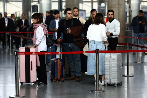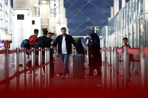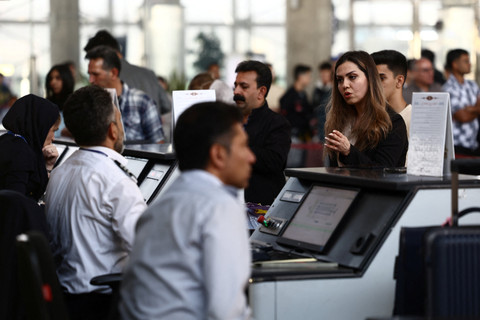 Para penumpang mengantre di aula terminal setelah penerbangan kembali beroperasi di Bandara Internasional Imam Khomeini, Teheran, Iran, Sabtu (25/4/2026). Foto: Majid Asgaripour/WANA via REUTERS
