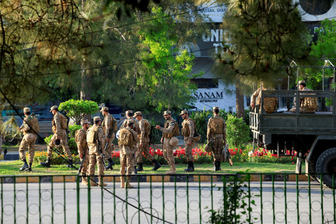 Polisi dan militer mulai melakukan penjagaan ketat di kawasan dan jalan-jalan menuju hotel Serena pada Selasa (21/4/2026).