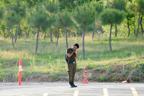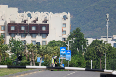 Polisi berjaga di pos penjagaan jalan menuju Hotel Serena, tempat kemungkinan fase kedua perundingan perdamaian antara Amerika Serikat dan Iran di Islamabad, Pakistan, Selasa (21/4/2026). Foto: Akhtar Soomro/REUTERS
