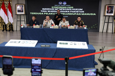 Direktorat Jenderal Imigrasi berhasil mengungkap penyelundupan manusia dengan tujuan akhir Australia. Tiga warga negara (WN) Pakistan yang diduga terlibat berhasil diamankan. Foto: Ajeng Dinar Ulfiana/REUTERSBarang bukti berupa paspor dan telepon genggam yang diamankan dihadirkan saat konpers di di Kantor Ditjen Imigrasi, Jakarta Selatan, Senin (20/4). Foto: Rivan Awal Lingga/ANTARA FOTODirektur Jenderal Imigrasi Hendarsam Marantoko mengatakan, tiga tersangka yang diamankan berperan mengoordinasikan perjalanan warga negara asing dari Indonesia menuju Australia. Foto: Rivan Awal Lingga/ANTARA FOTOKetiganya telah ditetapkan sebagai tersangka sejak 18 Februari 2026 dan ditahan di Rutan Salemba. Foto: Rivan Awal Lingga/ANTARA FOTOBerkas perkara mereka juga telah dinyatakan lengkap (P21) pada 10 April 2026. Foto: Ajeng Dinar Ulfiana/REUTERS