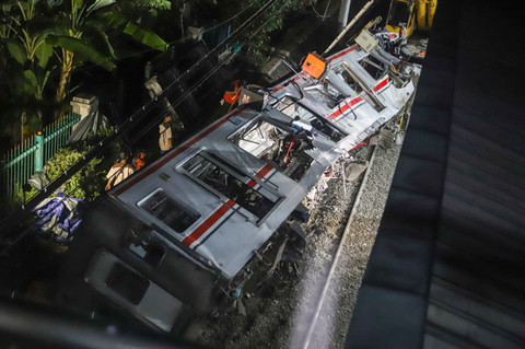 Foto: Kecelakaan Maut di Bekasi, Evakuasi Gerbong KRL Masih Berlangsung