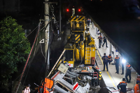 Proses evakuasi masih berlanjut sejak terjadinya kecelakaan maut yang terjadi pada Senin (27/4) malam sekitar pukul 21.00 WIB.