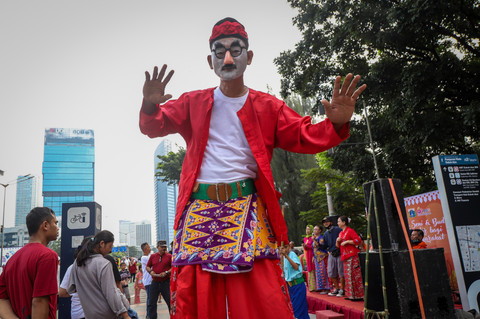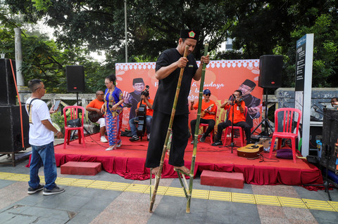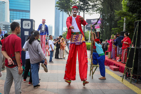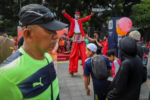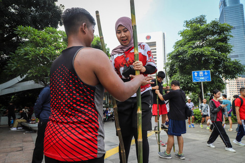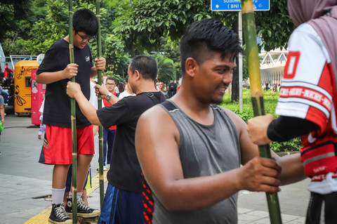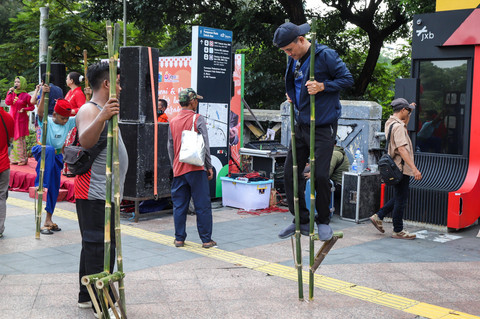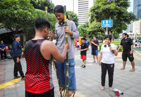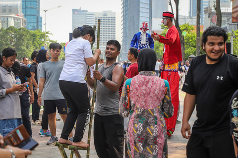 Foto: Melestarikan Permainan Egrang di CFD Jakarta