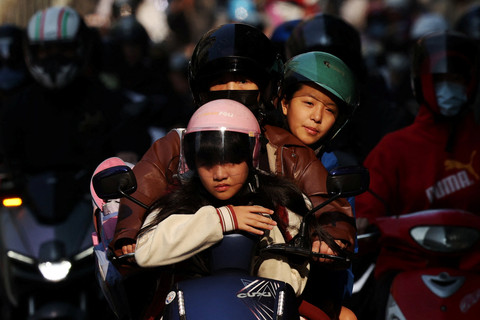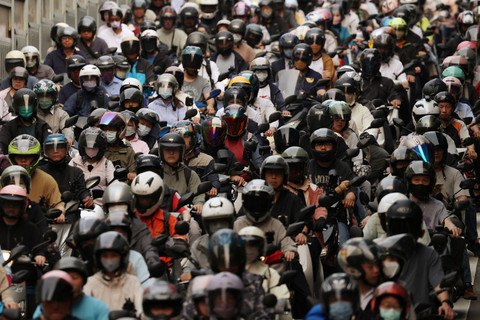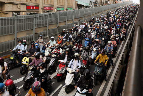 Para pengendara motor menggunakan jalur keluar dari Jembatan Taipei selama jam sibuk pagi hari di Taipei, Taiwan, Selasa (21/4/2026). Foto: Edgar Su/REUTERS