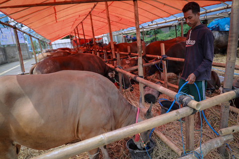 Satu bulan menjelang Idul Adha 1447 H, penjual sapi mulai menjajakan hewan kurbannya. Salah satunya bisa dijumpai di seberang Halte TransJakarta Simpang Kuningan, Jalan Jenderal Gatot Subroto, Kamis (23/4).