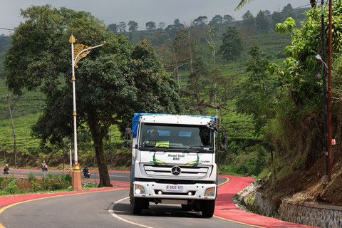 Seorang teknisi laboratorium menunjukkan sampel Biodiesel B50 saat acara pengujian bahan bakar nabati tersebut sebagai bagian dari rencana strategis pemerintah di Lembang, Provinsi Jawa Barat, Selasa (21/04/2026). Foto: Ajeng Dinar Ulfiana/REUTERS