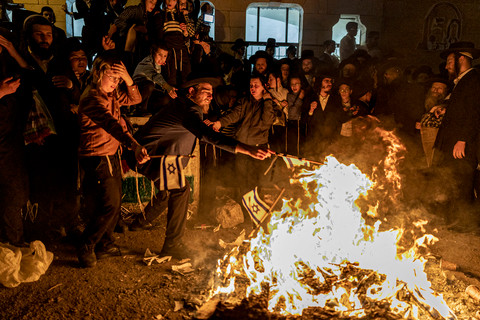 Para anggota Neturei Karta, sebuah organisasi internasional Yahudi Ortodoks anti-Zionis, membakar bendera Israel selama protes terhadap Negara Israel di kawasan Mea Shearim, Yerusalem, pada 22 April 2026, bertepatan dengan peringatan Hari Kemerdekaan Israel ke-78.